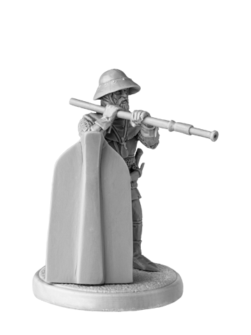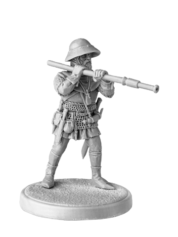 Unpainted figure of Hussite Handgunner. Ideal for board game SAGA and other wargames. This figure would be suitable for any 15th century European warrior.