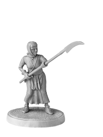 Unpainted figure of Taborite Woman. Ideal for board game SAGA and other wargames. This figure would be suitable for any 15th century European warrior.