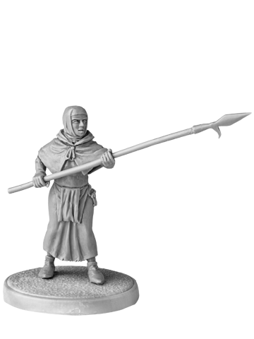 Unpainted figure of Taborite Woman. Ideal for board game SAGA and other wargames. This figure would be suitable for any 15th century European warrior.