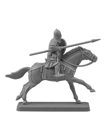 Unpainted figure of Mounted Rus warrior, 13th century. Ideal for collectors and wargames.