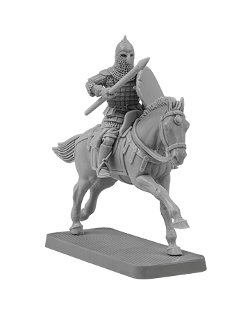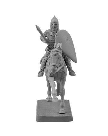 Unpainted figure of Mounted Rus warrior, 13th century. Ideal for collectors and wargames.