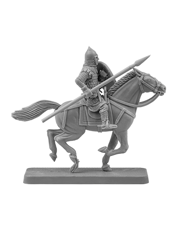 Unpainted figure of Mounted Rus warrior, 13th century. Ideal for collectors and wargames.